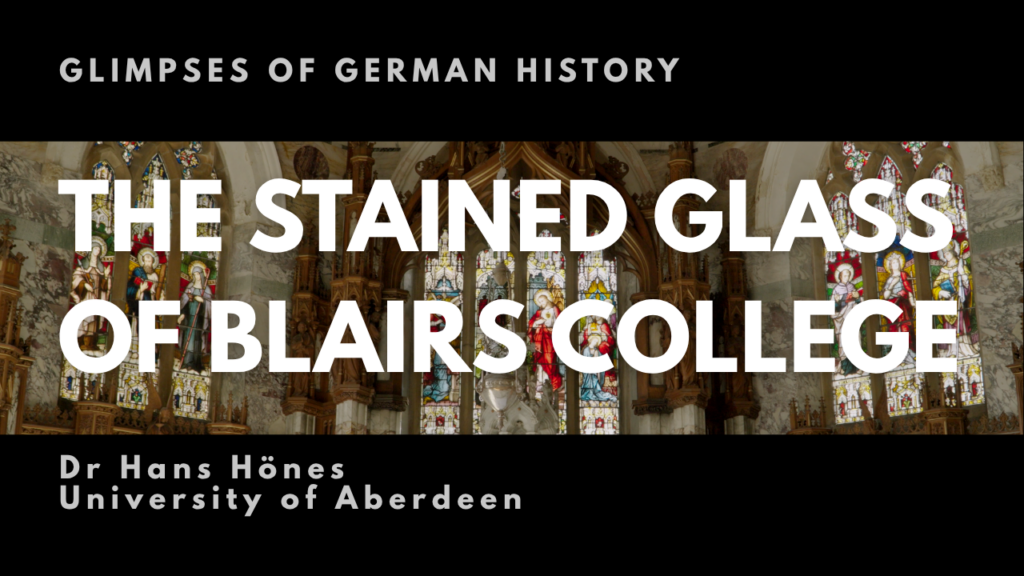 Hans Hönes takes us inside the chapel of Blairs College in Aberdeen to gaze upon a spectacular set of stained glass windows made by a group of Munich craftsmen in the nineteenth century. These windows are not only a statement piece about Catholic identity, but they also reveal the cultural connections between Germany and Scotland.
